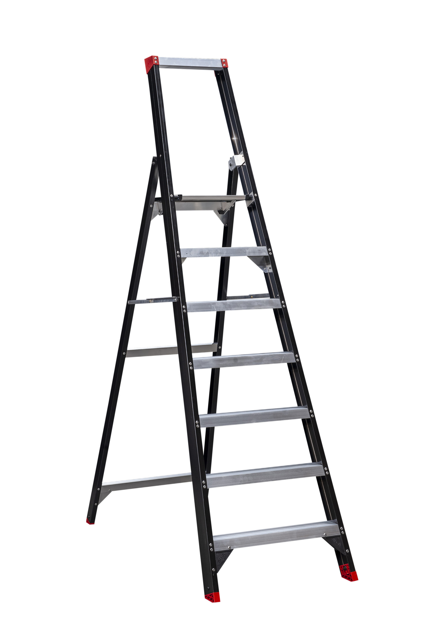 De Mammoet Enkel Oploopbare Trap is de aluminium bordestrap voor bouw en industrie. Deze trap 7 treden is geschikt voor gebruik onder zware omstandigheden. De MAMMOET bordestrap is uitgevoerd met brede antislip treden van dubbel aluminium kokerprofiel. De treden zijn met een dubbele constructie in de trapstijlen bevestigd. Deze trap heeft dan ook glansrijk de test met 350KG testbelasting doorstaan. De vuilafstotende coating voorkomt zwarte handen bij intensief gebruik. De drukvaste spreidstandbeveiliging zorgt ervoor de de trap niet zomaar inklapt. En dankzij de brede rubberen trapvoeten werk je met deze professionele dubbele trap altijd stabiel en veilig✓