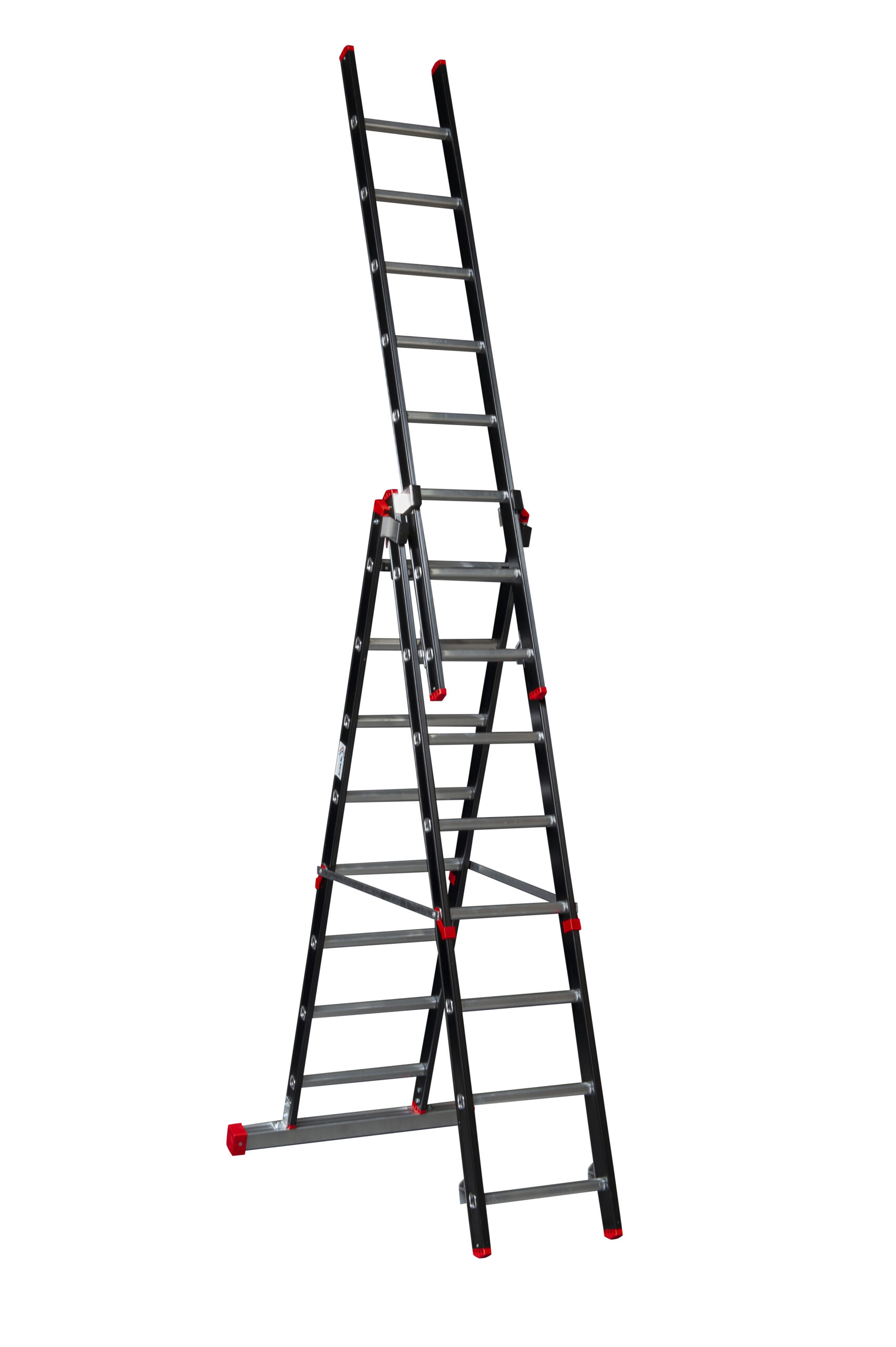 De sterkste professionele reformladder van Nederland. De 3 delige Manhattan reformladder is dankzij de robuuste maar lichtgewicht stabiliteitsbalk extra stabiel. Daardoor werk je gegarandeerd veilig. Deze reformladder 3×8 kan als vrijstaande/reform (A-stand) ladder gebruikt worden maar ook als opsteekladder worden gebruikt.