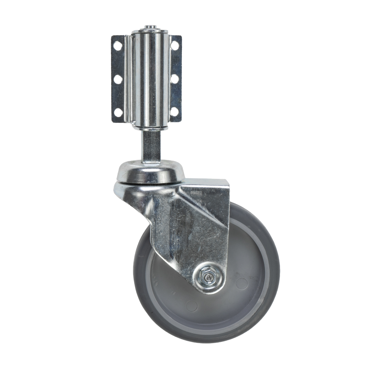 Verend wiel met een diameter van 100mm. standaard voorzien van een montageplaat. Met deze verende wielen tover je een standaard enkele of dubbel oploopbare trap om in een handige en snel verplaatsbare trap. ideaal voor kleinere magazijnen en smalle ruimten of paden. Dit wiel dient vooral voor vervanging en reparatie van een bestaande trap met wielen.